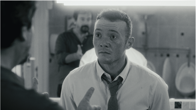 The new short film from Writer/Director Nicholas Chandler, LOOK AHEAD, stars Lee Brophy and David Hepburn as two men who have an unusual encounter in a men's bathroom.